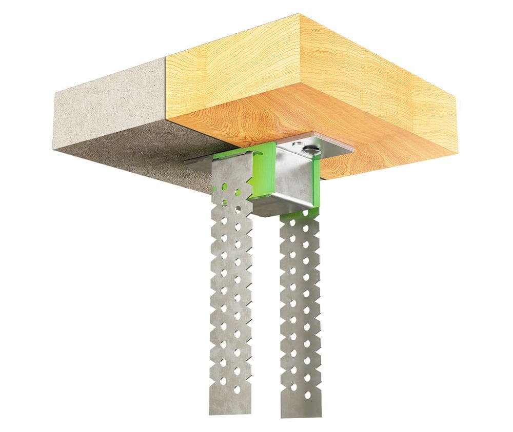 Die Wandstützen werden in einem Raster angebracht und bilden die Basis, in die Holz- oder Metallprofile montiert werden können. Dank der akustischen Entkopplung, die das System bietet, werden Vibrationen und Schallübertragung wirksam reduziert. In den Hohlraum zwischen Vorsatzwand und bestehender Wand kann schallabsorbierendes Material eingebracht werden, wodurch der Dämmwert der Konstruktion weiter verbessert wird. Die Vorsatzwand wird mit einer doppelten Lage Gipskarton oder anderem Plattenmaterial abgeschlossen. Achten Sie darauf, dass die Konstruktion mit Hilfe eines Randstreifens vollständig von den angrenzenden Wänden, Böden und Decken entkoppelt bleibt.